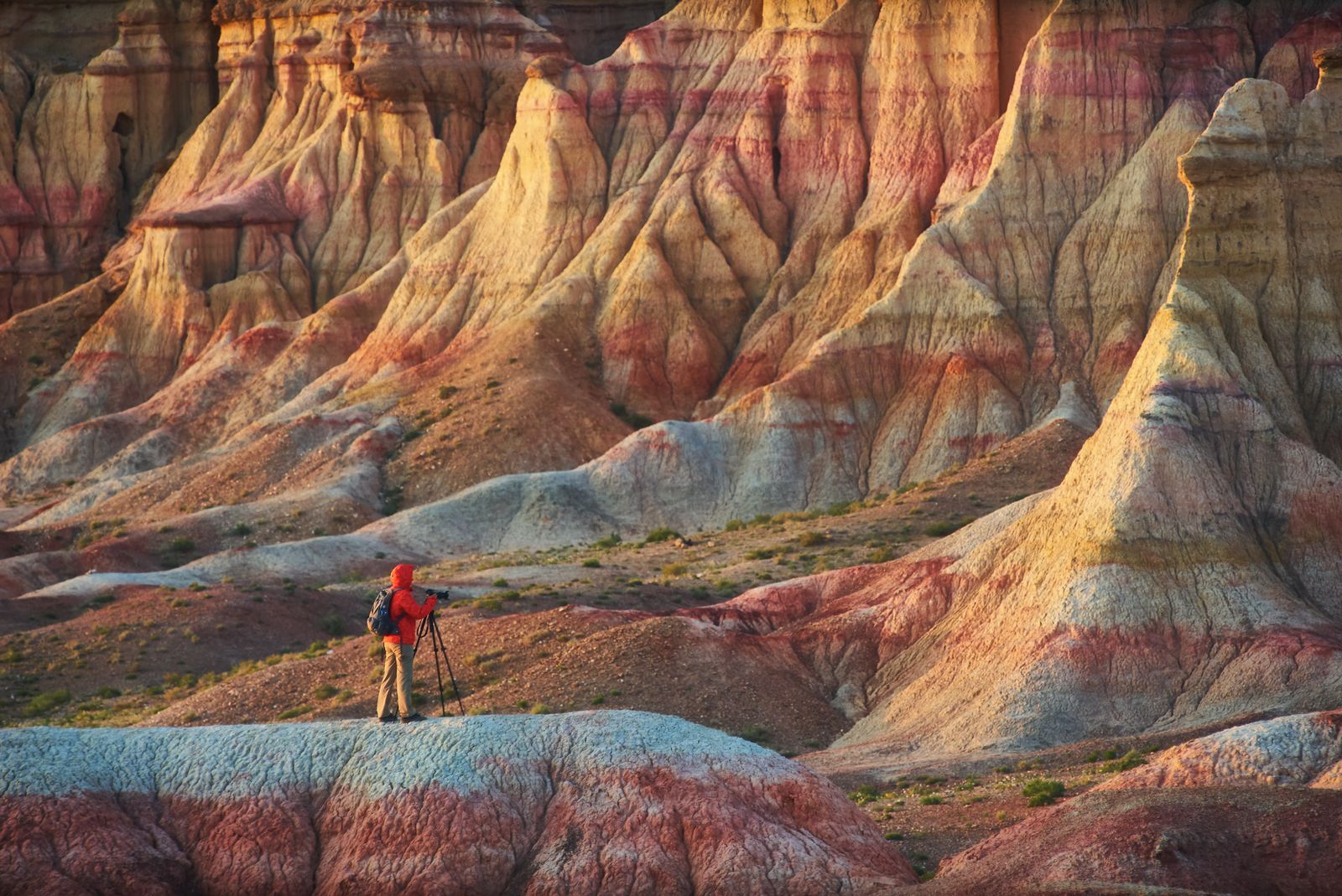 Tsagaan Suvarga is een rotsformatie die ooit de bodem van een oerzee vormde. Je verkent de Tsagaan Suvarga Scarps: levendige, gelaagde kliffen in tinten wit, oranje en rood. Je wandelt naar de top voor een uitzicht over de uitgestrekte woestijn.